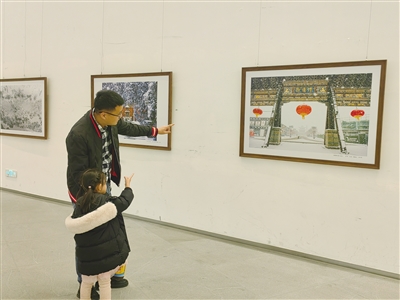 在主展厅,大同市民施雨正在以展现大同冬季之美的摄影作品为背景为姥姥拍照,施雨向记者分享说,想趁周末带老人出来走走。摄影展多以大同风景、人文为内容,带着老人来看,不仅能勾起大家共同而美好的回忆,而且有了更深的感受。