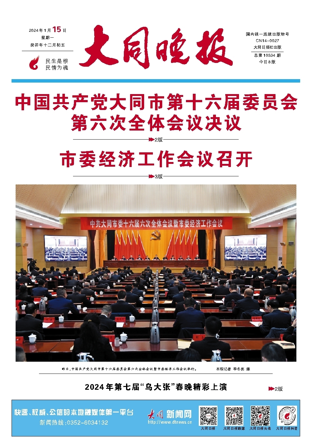 大同晚报 要闻 01 2024-01-151 2024年01月15日 星期一