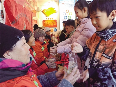 现场,18位家长带着孩子制作腊八蒜。之后,孩子们把做好的腊八蒜送到环卫工人的手中,并对他们深深鞠了一躬,送上一个大大的拥抱,一句句“谢谢爷爷奶奶,你们辛苦了!”稚嫩的童声,让现场爱意涌动。“快到腊八节了,送上我们亲手制作的腊八蒜,祝福环卫工爷爷奶奶们新年快乐!”