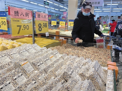 本报讯 (记者 孙露) 明日就是中国传统节日腊八节,香甜的腊八粥将成为很多市民餐桌上的主角。16日,记者走访市场了解到,各大超市纷纷开辟腊八食材销售专区,无论是搭配好的八宝米,还是薏米、红豆、莲子等,但凡和腊八粥相关的五谷杂粮都卖得红红火火。