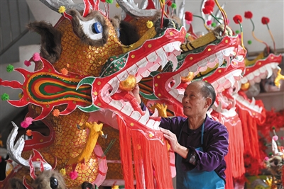今年70岁的邹玉特是广西非物质文化遗产项目代表性传承人,也是这个家族第三代炮龙扎制艺人。扎制炮龙不是一件轻松事,如果一个人单独扎制,要一个多月的时间才能完成。邹玉特说,扎制的炮龙不单单是为了生计,一方文化遗产传承比生计更重要。40余年来,他每年都要扎炮龙,从未间断,成为名副其实的炮龙“守艺人”。 新华社发