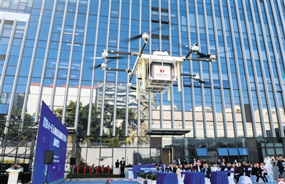 ◀ 1月19日,在深圳市血液中心,搭载着血液的无人机起飞前往深圳市中医院。