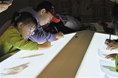 ▲1月24日,小观众在“盛世修典‘中国历代绘画大系’主题展——‘久久为功’品读书画中的中华文脉”展览现场临摹古画。