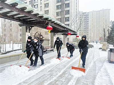 从下雪开始,悦家物业各项目分公司第一时间组织清雪作业,将小区的安全隐患降至最低。由于雪未停,经过一夜,清扫干净的道路再次积了厚厚的雪。物业工作人员清晨6时便开始扫雪,经过全员共同努力,各小区积雪得到了清理,保持了道路通畅。 (田志新)