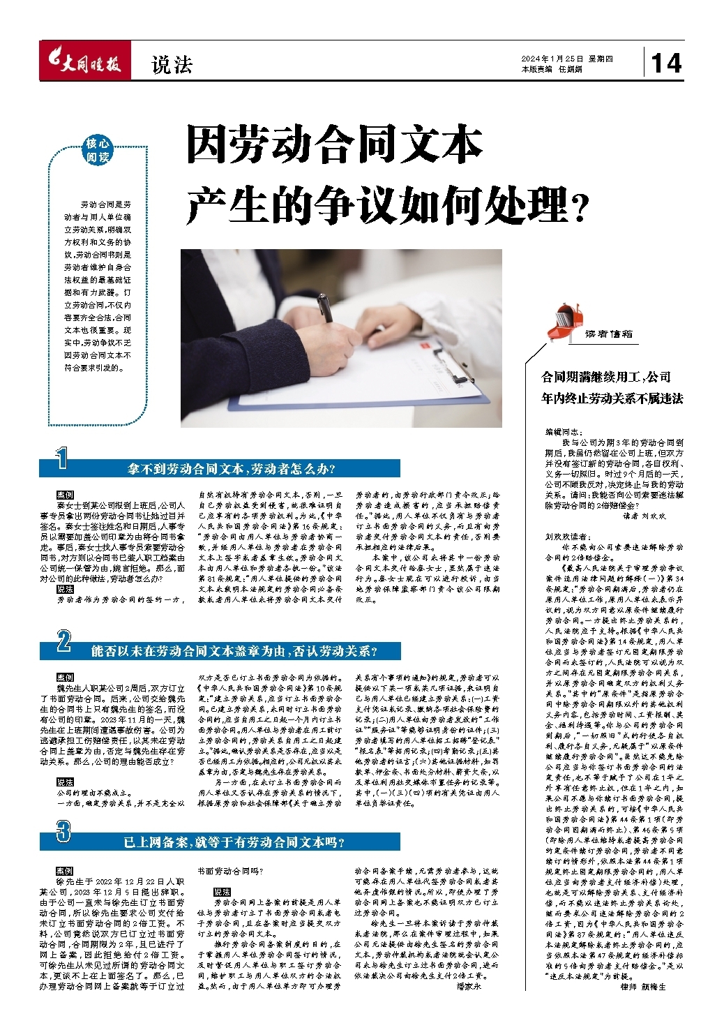 合同期满继续用工,公司年内终止劳动关系不属违法