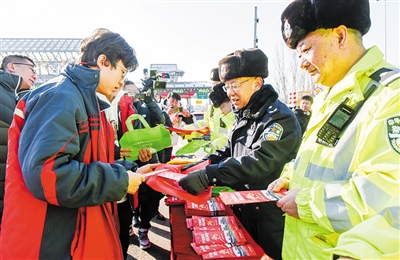 参加启动仪式的工作人员向过往车辆发放宣传彩页和春联,宣传交通安全常识,呼吁广大交通参与者遵守交通法规,摒弃交通陋习,共创安全、畅通、文明、和谐的道路交通环境。