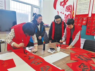 本报讯 (记者 郑林) 传承中华传统文化,喜迎龙年新春,近日,平城区古城街道华严寺社区联合腾渊文化传媒有限公司,共同开展了写春联送祝福活动。