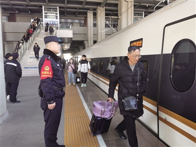 送走一趟列车,看着旅客背着行囊踏上旅途,尽管自己今年又不能回汾阳老家陪父母过年,但能让更多人平安回家团聚,侯帅飞心里倍感温暖。
