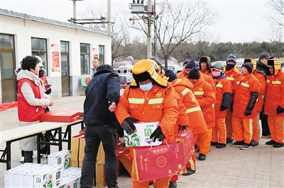 本报讯 (记者 杨昱郁) 年关将至,为答谢环卫工一年来的辛勤付出,切实将关爱送到环卫工人心坎上,1月31日上午,市手拉手爱心公益协会组织爱心企业为百余名环卫工送去牛奶和康复保健带,这也是该协会开展的“爱心温暖冬季”专项公益活动的第五站。
