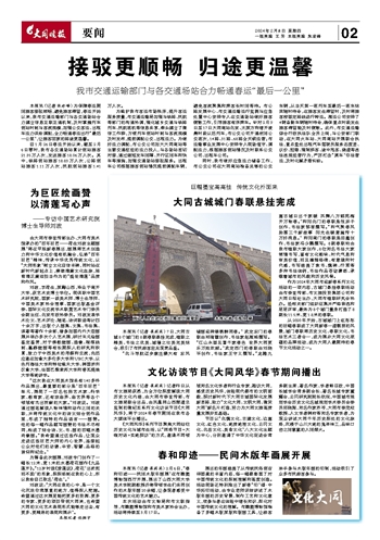 从2020年开始,古城城门上红彤彤的巨幅春联成了大同新春一道靓丽的风景,城门春联将历史文化、春联文化、书法艺术三者合一,成为展示大同文化底蕴的品牌活动,成为大同人最期待的春节文化活动之一。
