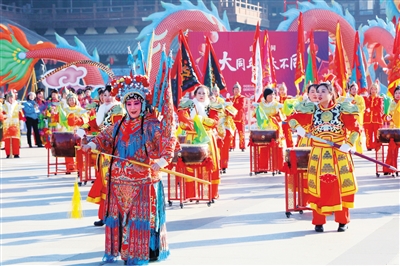 云冈区的表演团队表演了云胜锣鼓、地秧歌、舞龙、耍故事等极具地方特色的民俗社火,表演者精神抖擞、喜气洋洋,展现了喜迎新春的精气神。
