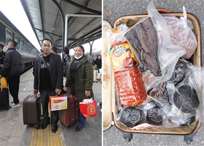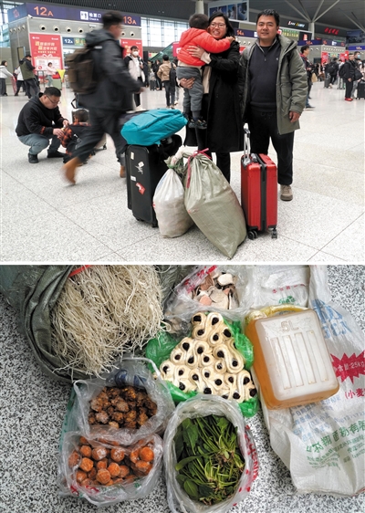 17日一早,河北邯郸东站进站口,邯郸市邯山区的贾蒙冬即将返回北京工作。他的书包里,装满了妈妈亲手做的包子、饺子、馒头,以及当地特产解府荷叶酥鱼、吕氏砍边烧饼等。贾蒙冬说,这次回来发现家乡不少土特产都注册了品牌,送给朋友既能增进感情,又能宣传家乡。
