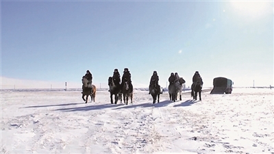 成立于2019年的马背警队,10名队员平均年龄30岁。每一次巡边路程有80公里,至少走两天。一路上,阿其图和战友们骑马行走在被白雪覆盖的草原上,踏查、走访牧民、联络护边员。赶上白毛风的时候,风就像搬运工一样把远方的雪吹来,越积越多,最终把风口的路面堵死,这个时候也是马背警队最揪心的时候。阿其图说:“对我们来说这是常事,我们怎么也得对得起‘警察’这两个字。”