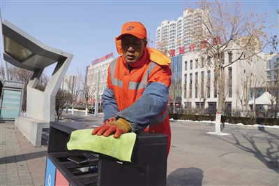 靳国山今年65岁,这是他在岗位上度过的第5个春节,身边同事说他是环卫战线上的一名“老兵”。靳国山说:“环卫工作虽然辛苦,但再累也值得。”