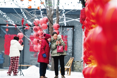 图为昨日,市民游客在古城东南邑踏雪游玩。 本报记者 张燕伟 摄