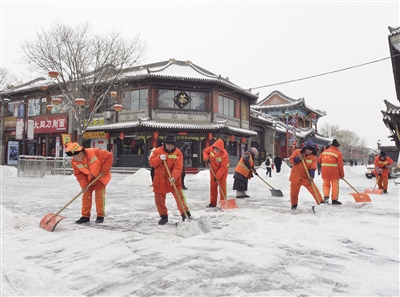 本报讯 (记者 杨昱郁) 2月20日,我市再次迎来降雪。以雪为令,平城区环卫服务中心、市新城环境公司4000余名环卫工第一时间全力扫雪除冰。