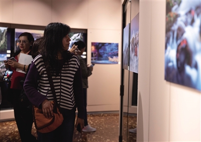 ▲ 2月20日,在墨西哥首都墨西哥城卡兰萨博物馆,参观者观赏张家界风光照片。