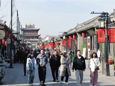 白天,华严寺、纯阳宫、关帝庙、九龙壁等景区游客众多,古城东南邑街巷内人来人往,好不热闹。入夜,古城内青砖照霓虹、花灯映笑脸,人们徜徉在五彩斑斓的灯海里,欢乐开怀。