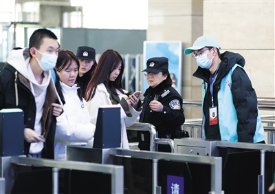 图为返校大学生正在有序出站。 本报记者 戎禹仁 摄