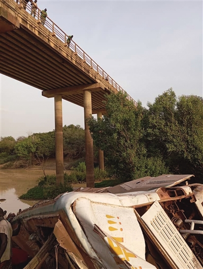 ▲ 这是2月27日在马里锡卡索大区拍摄的客车坠桥事故现场。