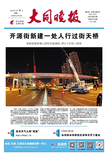 “有了这座天桥,我们通行会更加方便。”3月2日,不少经过智家堡公园的市民注意到,同煤快线北侧辅道上正在进行人行过街天桥施工,横跨道路两头,串联起智家堡公园和友谊南街周边小区、学校。2日23时40分,记者在友谊南街大同大学附属小学开源校区南侧看到,交警在同煤快线御河西路会入口至魏都大道出口设立了交通限行标识,架桥现场一派繁忙景象。