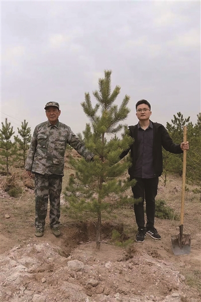 那几天,正好是大同天气暖和的时候,是种树的好季节。他和村民们忙得热火朝天,开着一个卡车,拉着树苗、铁锹,就往山坡上走。“这些年我一直在种,好多地方都已经绿了,现在种树的山坡比原来要更远一些。”我好奇,提出要体验一下,就和他一起种下了一棵樟子松。边铲土边给我介绍,像一个行家里手,也像一个农民,但更多的还是军人本色,说话很坚定,做事也严格按照自己制定的计划。
