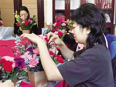 近日,平城区御锦源社区新时代文明实践站联合辖区一家花艺店开展插花活动,通过插花师的讲解指导,让居民在插花艺术中陶冶了情操,放松了心情,也营造出轻松愉悦、和谐创新的社区氛围。 本报记者 杨翠叶