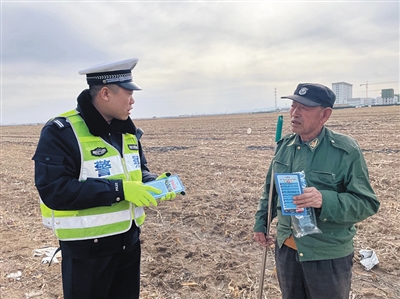 3月18日,高速二支队三大队民警走进沿线田间地头,开展春季交通安全宣传活动,普及交通安全法律法规,助力春耕生产,让农民群众带着“安全种子”回家,做到春耕生产、交通安全两不误。期间,民警还制止了一起村民在高速公路旁焚烧秸秆的事件,及时消除了安全隐患。