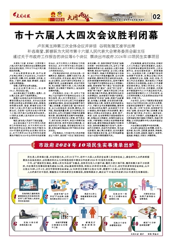 通过关于市政府工作报告的决议等6个决议 票决出市政府2024年10项民生实事项目