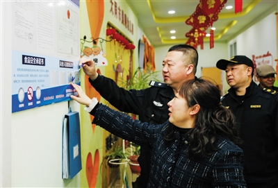 为做好幼儿园安全隐患排查工作,27日,平城区教育局联合大庆路街道对多个幼儿园开展食品卫生、消防等安全检查。 图为工作人员检查幼儿园从业人员健康证明。