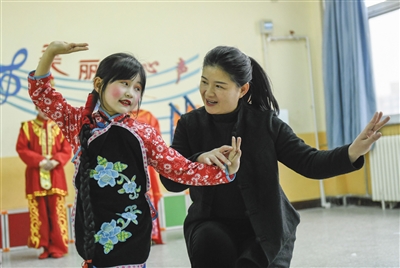 ▲3月27日,在河北省遵化市第四实验小学的“戏剧知识进校园”活动中,老师指导学生表演传统戏剧。