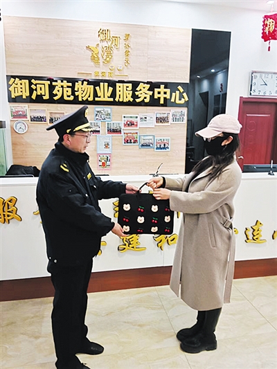 3月16日上午7时左右,碧水云天·御河苑保洁员张凤丽在打扫5号楼2单元大厅卫生时,发现大厅的休闲座椅上放着一个电脑包,张凤丽环顾四周没有其他人,她随即将电脑包送到物业前台,让物业客服查找失主。 客服员通过查找物业监控发现,一位女业主将电脑包放置在休闲椅上后接电话上了18层,通过查找18层业主信息后终于找到了失主李女士。当晚,李女士下班后来到物业找到值班保安员将电脑包认领取走,并对物业的拾金不昧的行为表示感谢。 (文章)