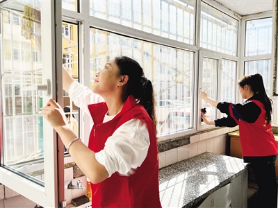 ◀ 日前,平城区民悦社区联合大同师专的志愿者帮助辖区无劳动能力或自主清理有困难的贫困户进行“最美庭院”清洁工作,在志愿服务中奉献爱心。