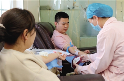 6日上午,万达广场献血屋里走进一对姐弟,工作人员得知姐弟俩都是第一次献血后,便向他们发放献血知识手册,并介绍了相关注意事项。“趁着假期过来奉献一份爱心。”弟弟说。