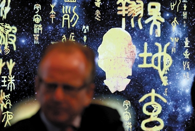 ▲4月20日,在英国伦敦,一名男子参观“汉字演变”主题展览。