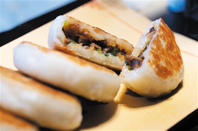 牛肉火烧,听其名略有些“粗糙”,制作过程却颇为复杂。采用秘制方法和的面要醒发一个晚上才能使用,馅料也十分讲究。将上好的牛腱用老汤卤熟,卤好的牛肉切成小丁,再加少许香菇丁。香菇丁是先将干香菇泡发好,加调料上锅蒸1个多小时,晾凉后切成小丁。将香菇丁与牛肉丁相拌,拌匀后再加少许秘制调料才能包制。包好的小饼小火慢烙,烙至两面金黄即可。烙好的牛肉火烧外皮酥脆,馅心香味浓郁。牛肉的酱香味和香菇独特的香气完美融合,味道丰富。咬一口,满足感爆棚。