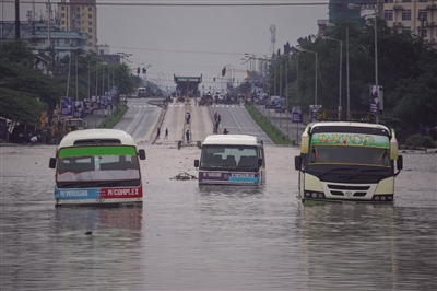 ▲ 这是4月25日在坦桑尼亚达累斯萨拉姆拍摄的洪水淹没的车辆。