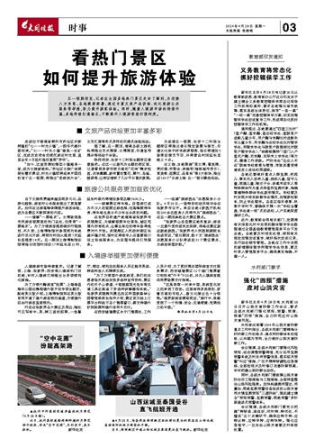 五一假期将至,记者在全国多地热门景区走访了解到,为迎接八方来客,各地提前部署,通过丰富文旅产品供给、优化旅游公共服务等举措,努力提升游客体验。同时,随着入境游市场的持续升温,多地积极打通堵点,不断提升入境游客旅行便利度。