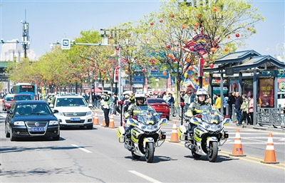图为5月2日,市公安局交警支队特勤大队民警在古城和阳街进行道路巡查。 本报记者 张燕伟 摄