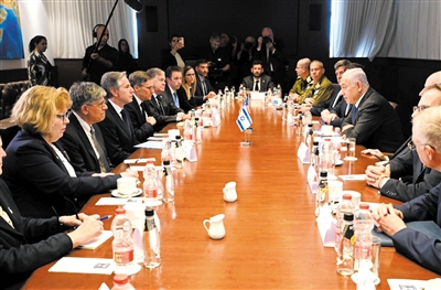 ▼ 5月1日,在耶路撒冷,以色列总理内塔尼亚胡会见到访的美国国务卿布林肯。
