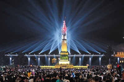▲5月3日,人们在哈尔滨防洪纪念塔广场观赏光影秀。