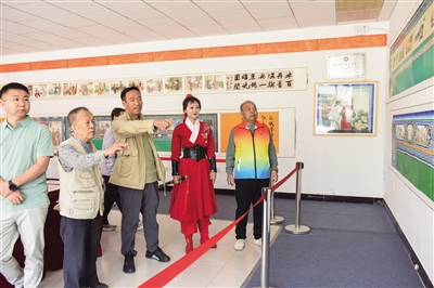 图为8日,市民、游客在马家小村北魏民俗文化街观看非遗炕围书画展。 本报记者 于宏 摄