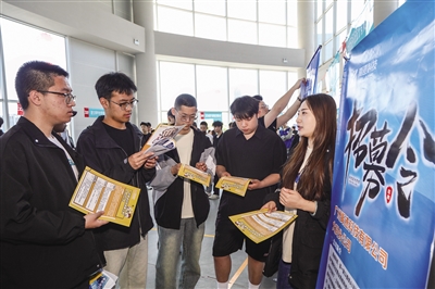 记者在现场看到,首航环宇航空地面服务有限公司、晋鹰无人机科技有限公司、奇瑞汽车有限公司等企业招聘展位排列整齐有序,求职学生络绎不绝。各企业根据用人实际需求,详细了解求职学生的专业方向、业务能力等情况,求职学生积极与招聘人员交流,向心仪的岗位投递个人简历。“今天的双选会有很多岗位供我们选择,我希望能找到与自己所学专业背景和技能相符的工作岗位。”学生许佳奇说。双选会进行期间,学院还组织召开了座谈会,进一步探讨学生的职业发展和就业问题,为学生们提供更加全面、深入的就业指导。据统计,现场共有225人达成就业意向。