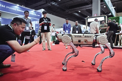 ◀ 5月7日,在马来西亚吉隆坡,参观者在防务展上拍摄中国军工企业的展品。