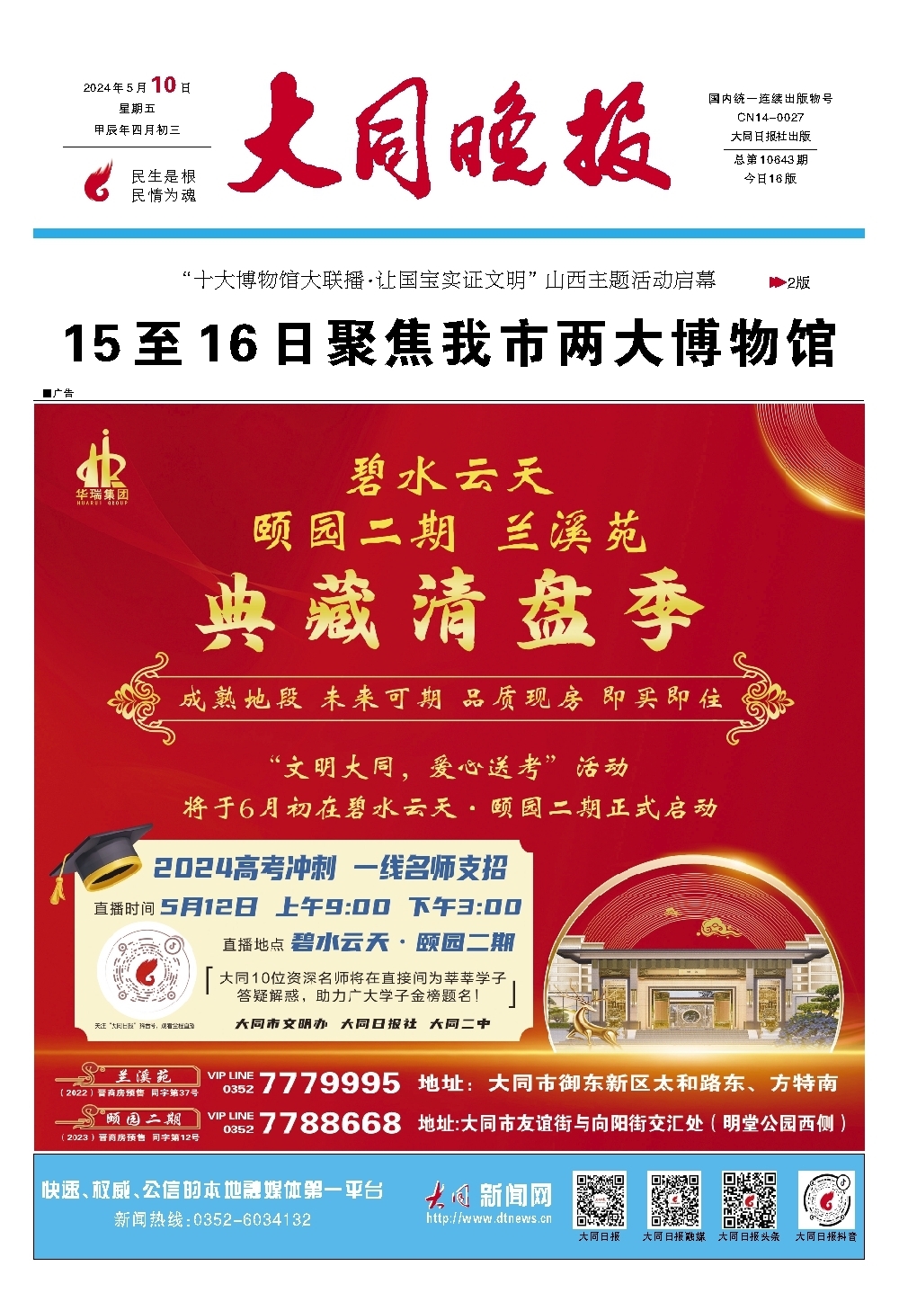 大同晚报 要闻 01 2024-05-101 2024年05月10日 星期五
