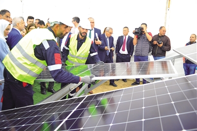 由中国企业承建的突尼斯凯鲁万100兆瓦光伏电站8日在凯鲁万省举行开工仪式。这是突尼斯目前最大的在建光伏电站项目。 新华社发