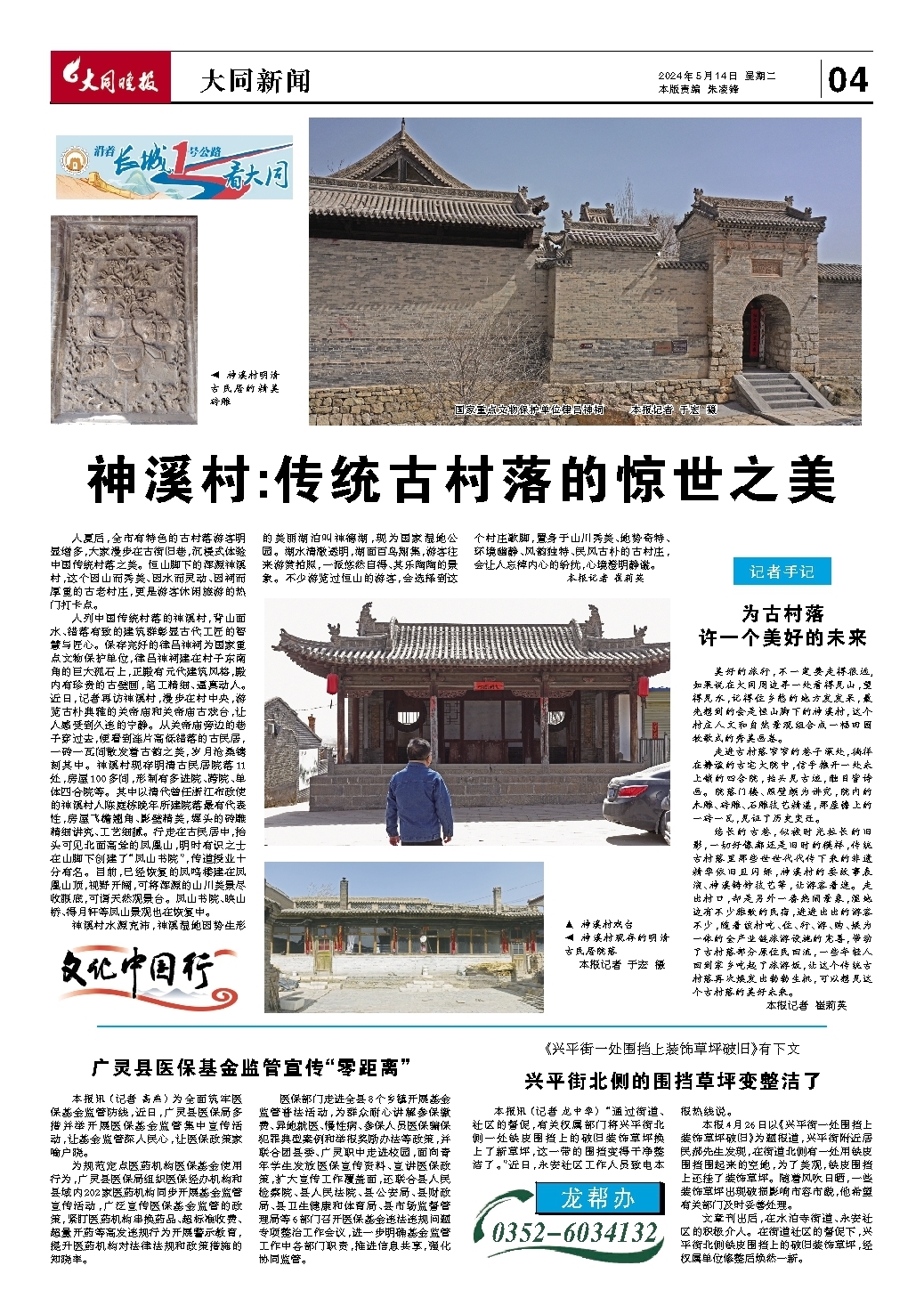 入夏后,全市有特色的古村落游客明显增多,大家漫步在古街旧巷,沉浸式体验中国传统村落之美。恒山脚下的浑源神溪村,这个因山而秀美、因水而灵动、因祠而厚重的古老村庄,更是游客休闲旅游的热门打卡点。