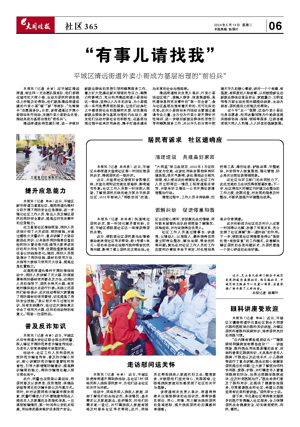 ~~~平城区清远街道外卖小哥成为基层治理的“前沿兵”