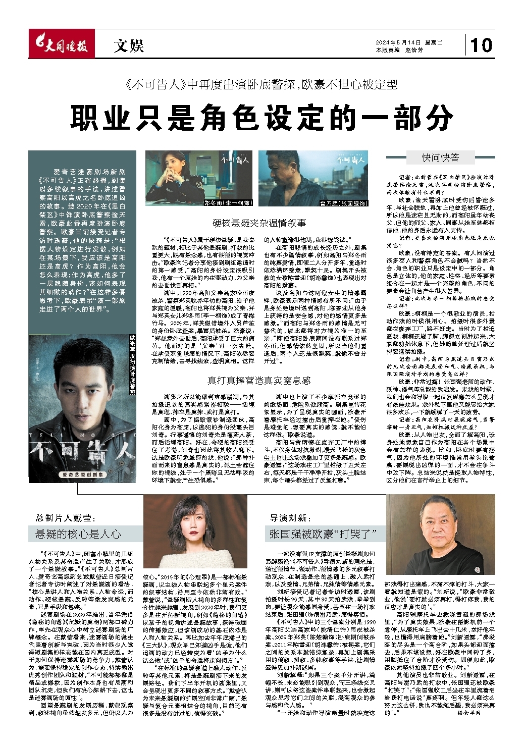 《不可告人》中再度出演卧底警探,欧豪不担心被定型~~~