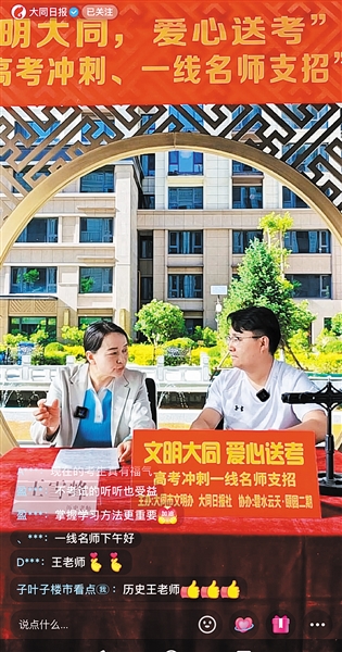 以梦为马,不负韶华;高考冲刺,一线名师支招。5月12日,大同日报社“爱心送考”第一阶段活动——“2024高考直通车”直播活动在碧水云天·颐园二期飞瀑流泉、鸟语花香的凉亭下圆满完成。